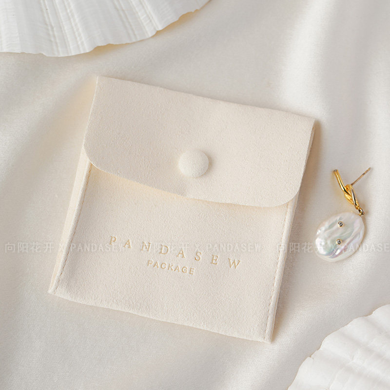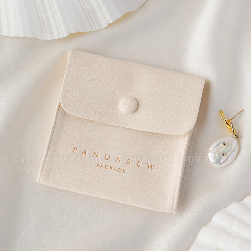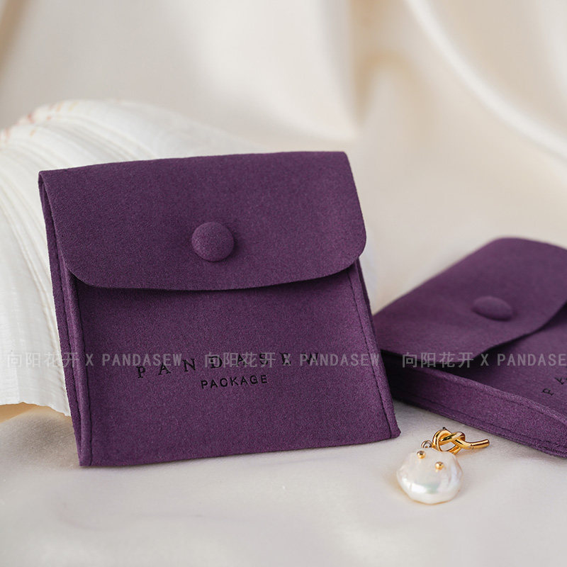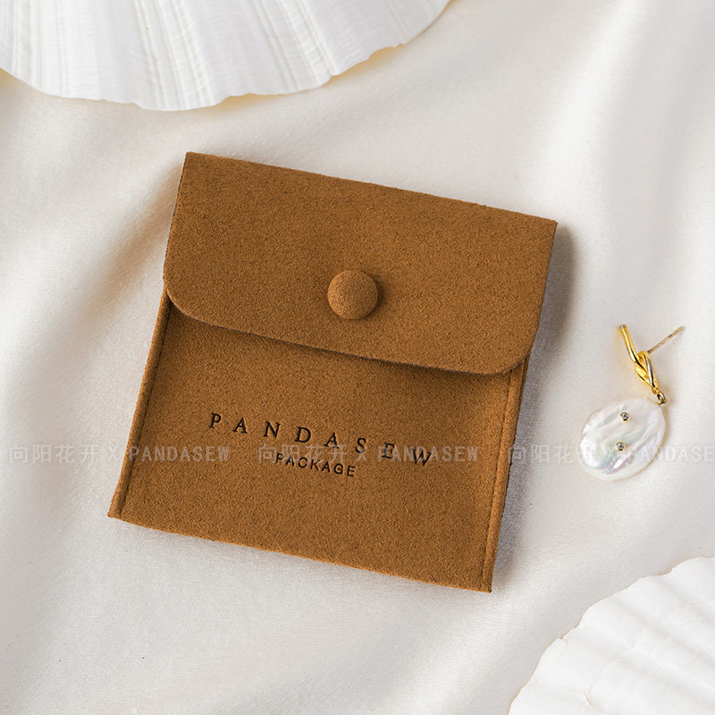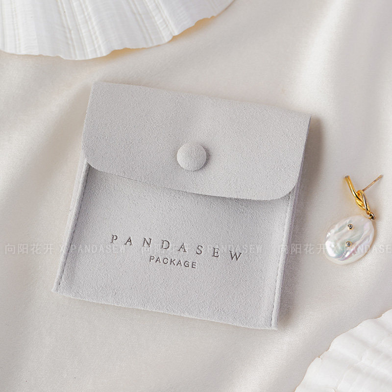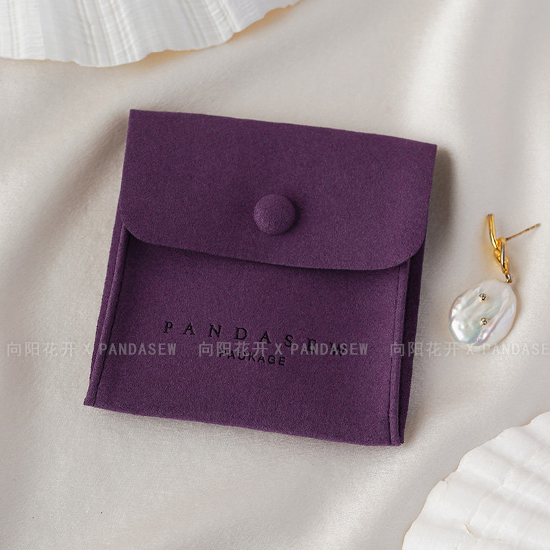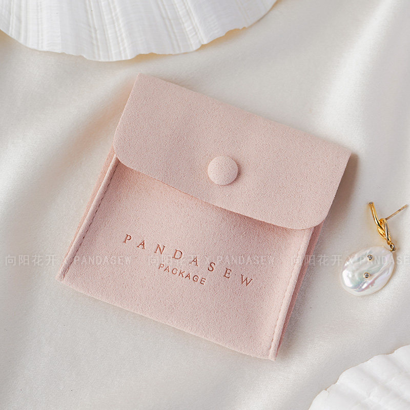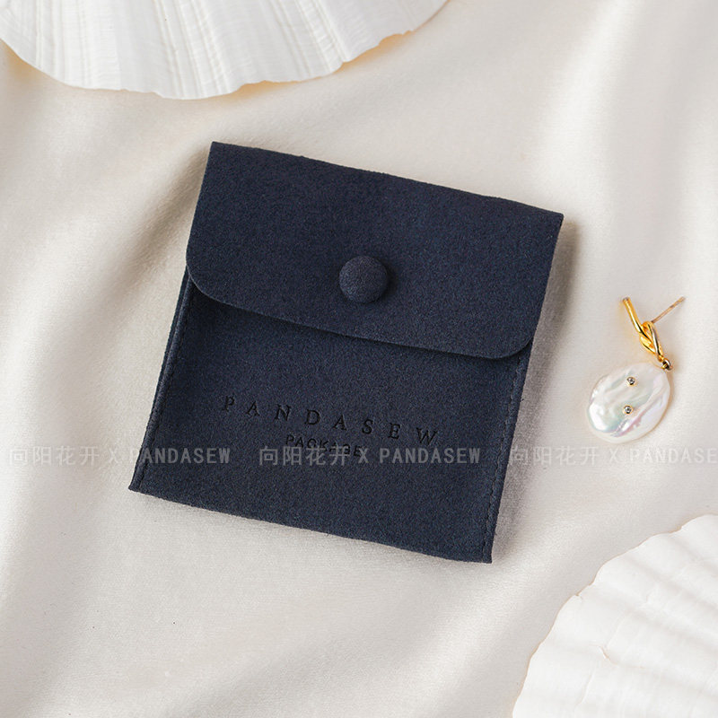 Custom Logo Suede Jewelry Pouch with Snap Button Closure·8x8cm