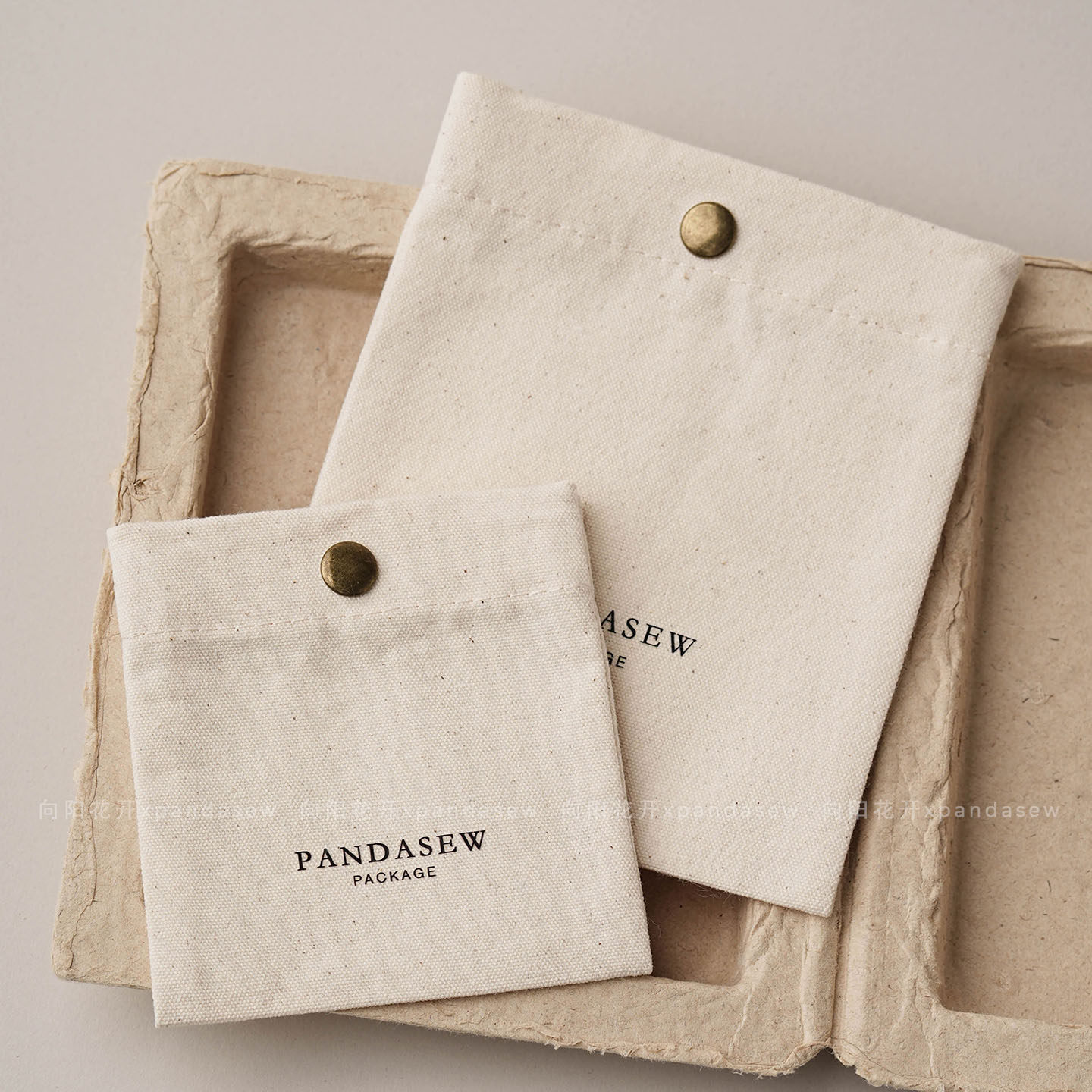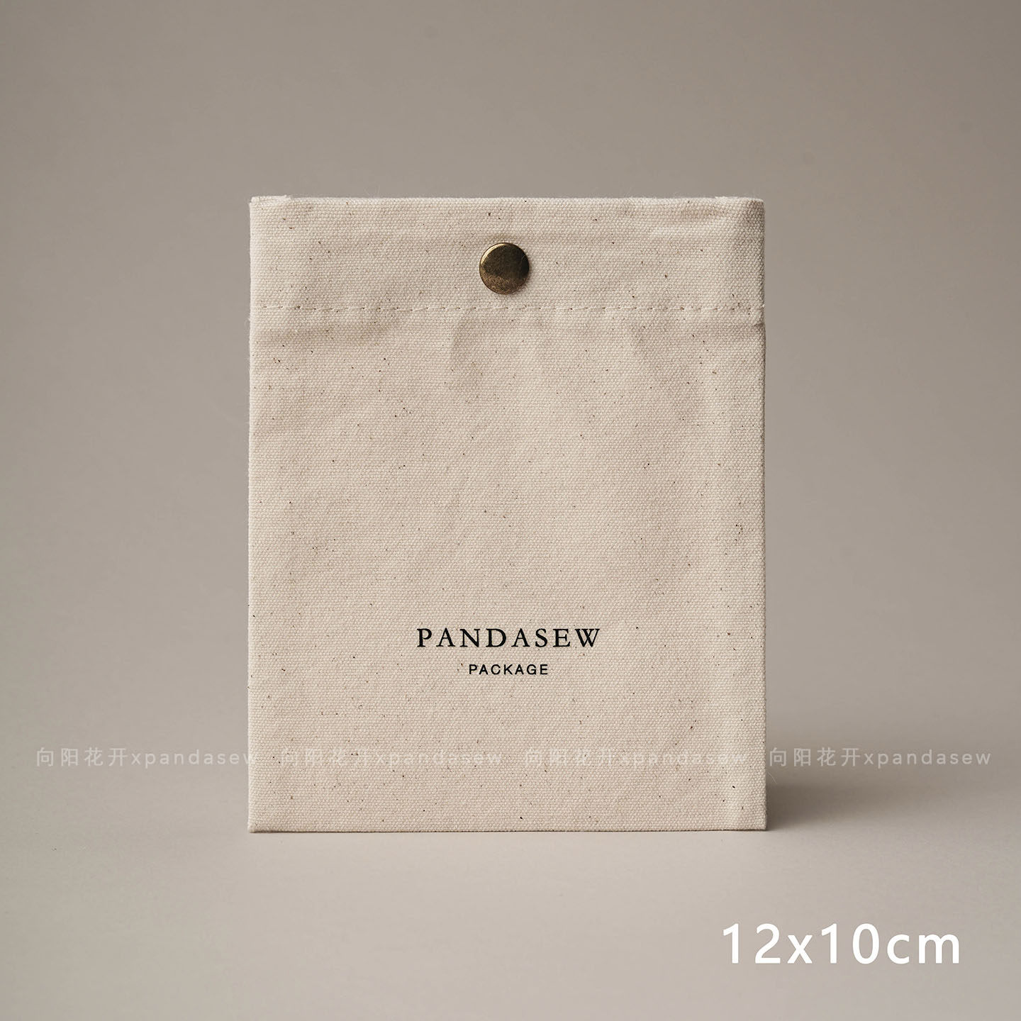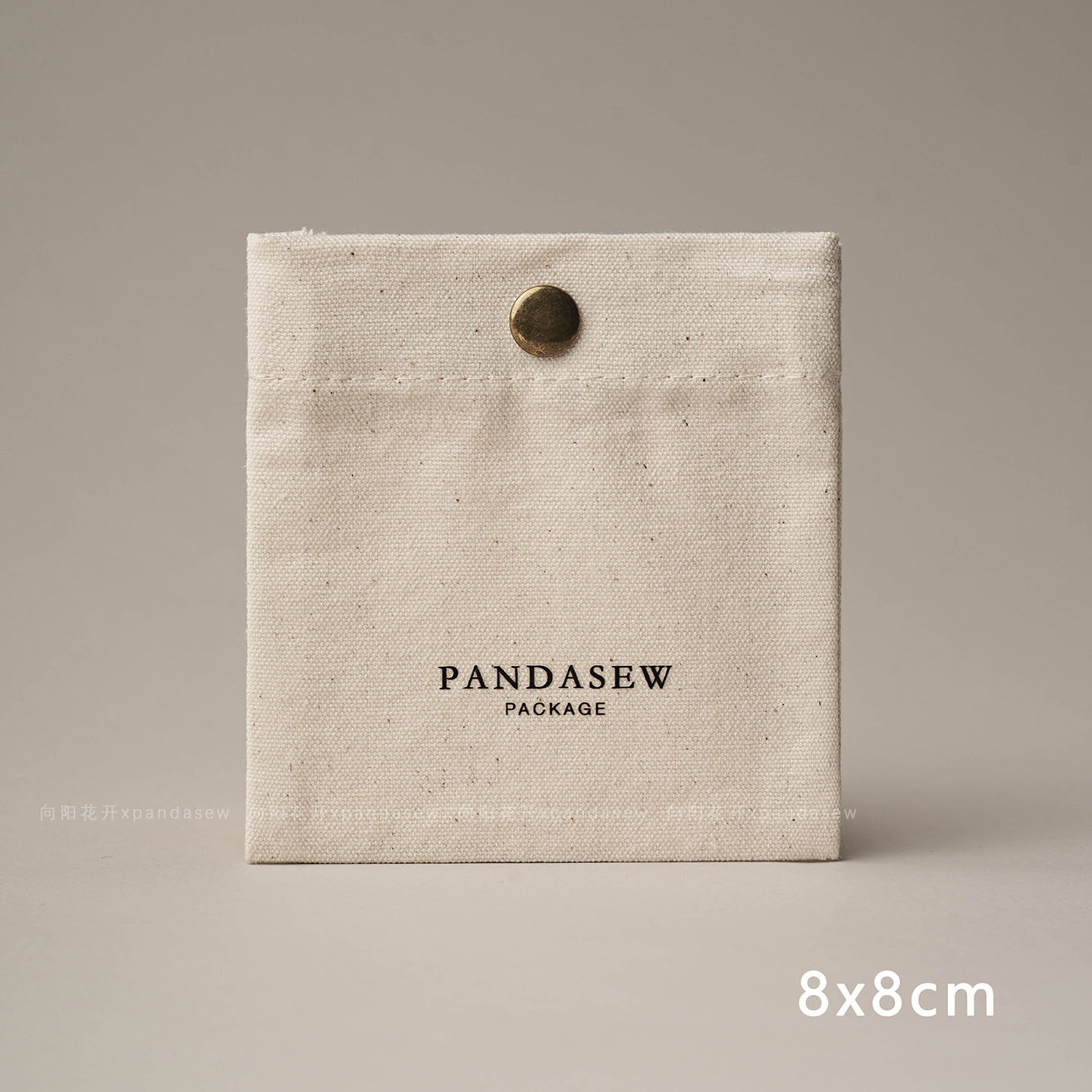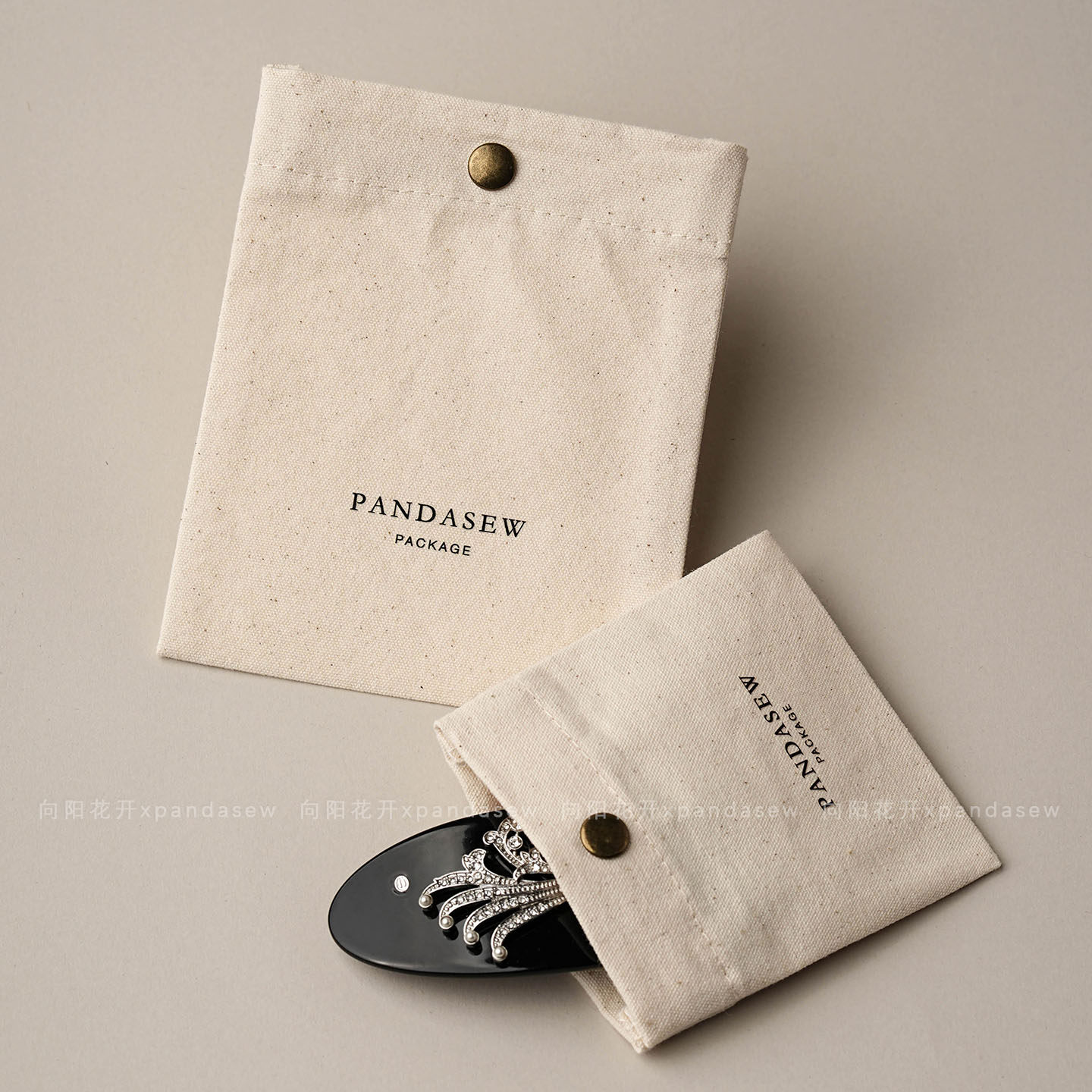 This custom snap jewelry pouch features a soft cotton canvas texture and a secure metal snap button, providing a refined and functional packaging choice for jewelry brands.